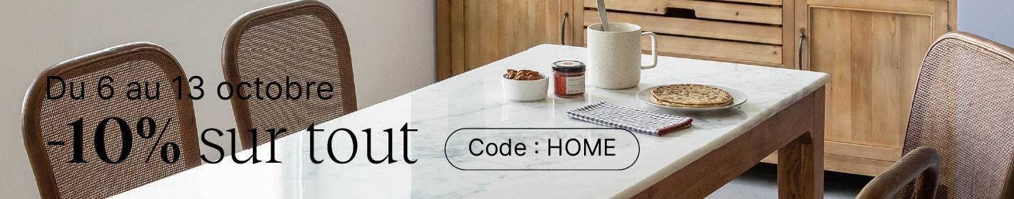 Profitez de -10 % sur tout le site avec le code HOME jusqu’au 13 octobre